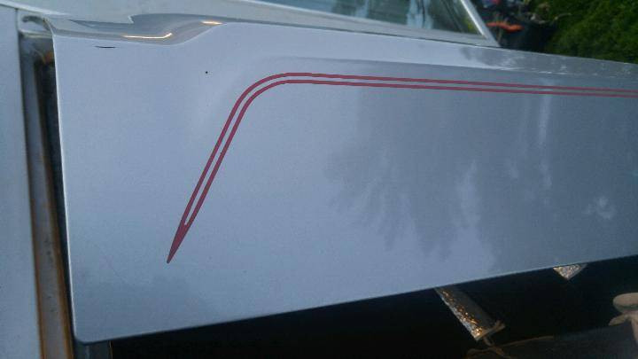 The good news, I suppose, was that it hadn't been there long. What I DID notice was this car had no rust, touched-up original paint and everything seemed to defy the idea of 106k miles. The windows and lock function like new. The 8 track works (albeit distorted). The tape stripes are original, as evidenced by the die-cut ends, rather than overlapped edges.