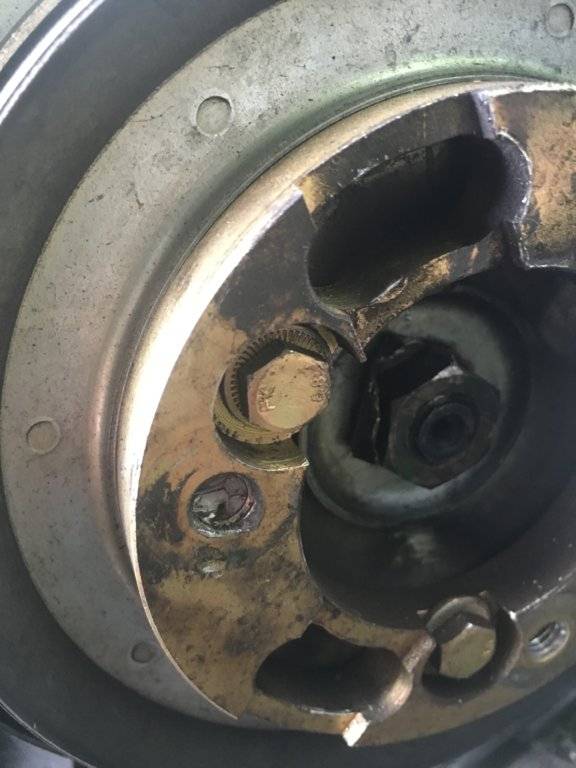 Close up of what happens if the bolt comes lose... it starts to wobble off the plate and fatigue shears it right off.