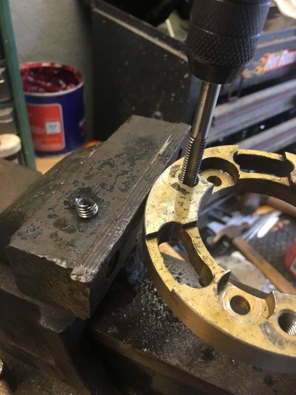 Using a tap to catch it and thread it through. That’s not a helicoil on the vice... that’s the threads of the sheared bolt.