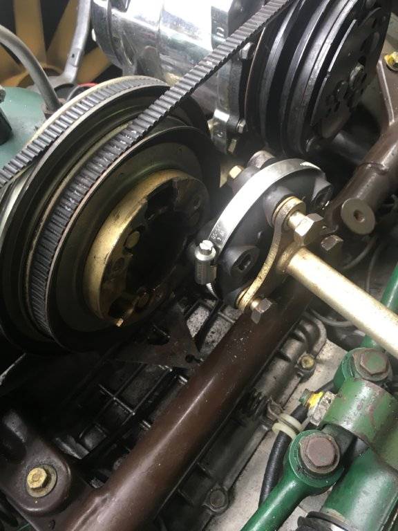 Power coupling detached. Similar to BMW and Mercedes drive shaft couplings. Bolts to the adapter neck down to form shoulders to sit flat on the plate. I use two hose clamps to pre-load the rubber coupling in order to remove and insert the bolts in their proper alignment.