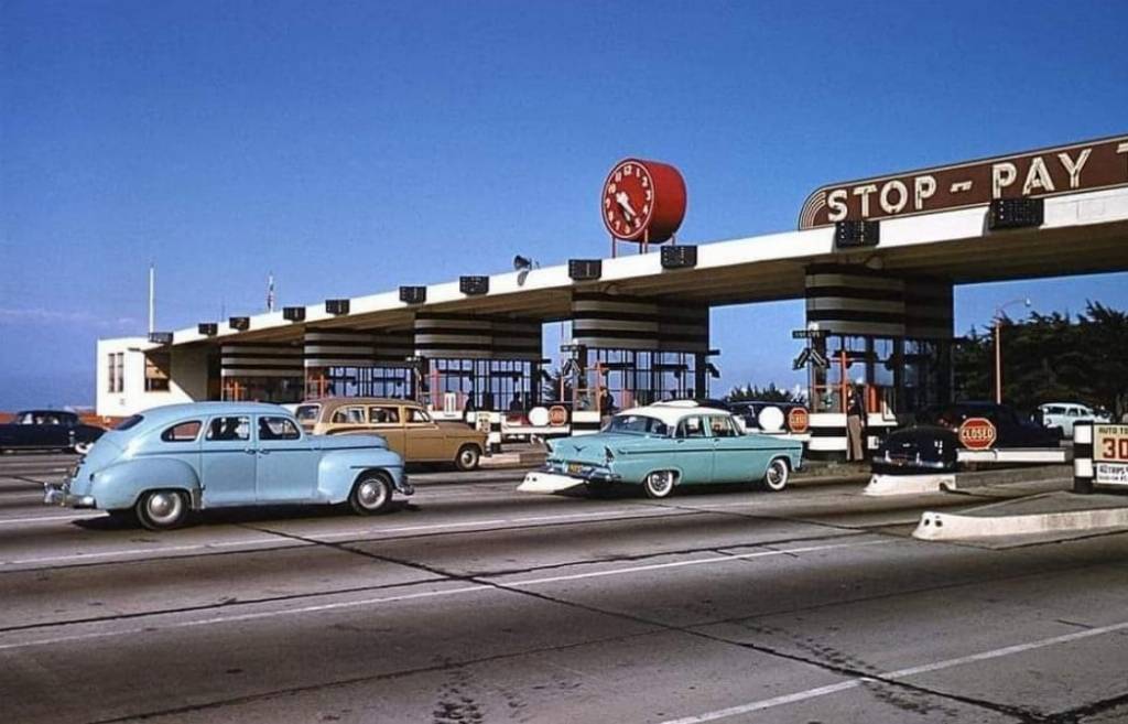 While trying to figure out where the tool booths are, I came across this one from Sydney. Australia in 1959. Another clock and much better design than the overhead EZ Pass readers we have now.