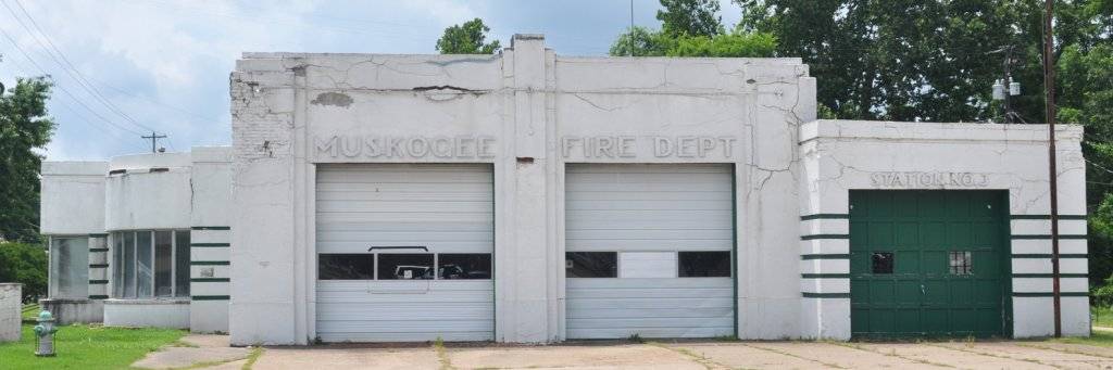 Last time I was in Muskogee was when my father inlaw passed 10 years ago. He was an ummm... Let's say interesting guy.Built 1938, former Muskogee OK Fire Station Number 3, 2011 W. Okmulgee Ave, Muscogee, OK. Streamline moderne. Stucco over brick.