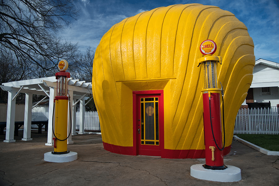 "Although Winston-Salem, North Carolina is known more for tobacco than oil, it is home to the last Shell Oil clamshell station in the United States.