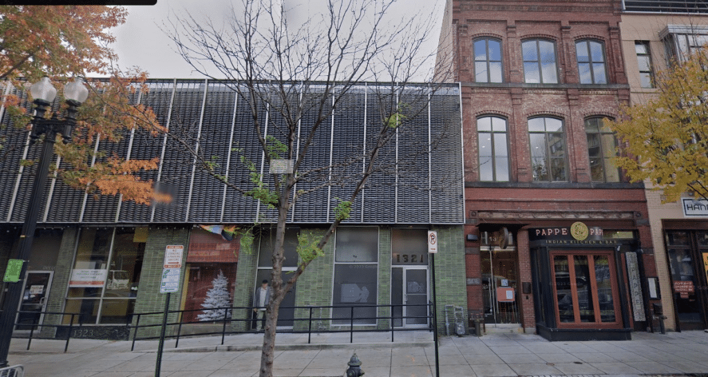 Same address, alleged to be remodeled facade. Part of it, on the left, even torn down. White doorway mid building gives it away to me, plus basic roof outline of 30's facade is still visible.