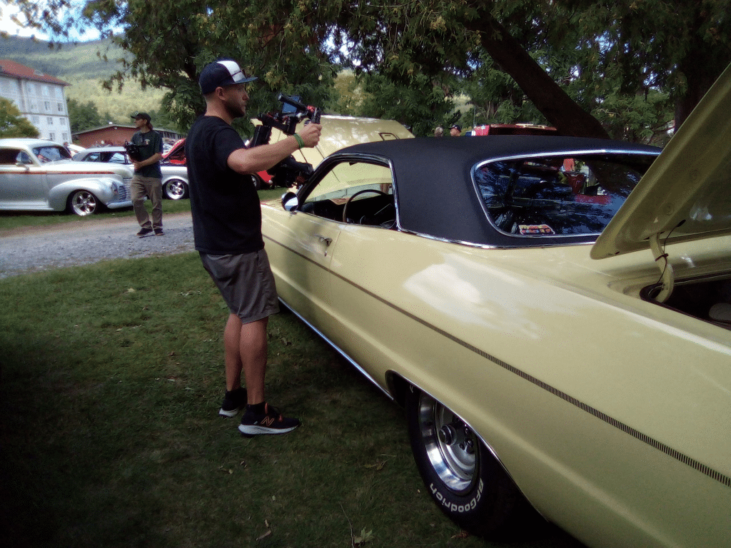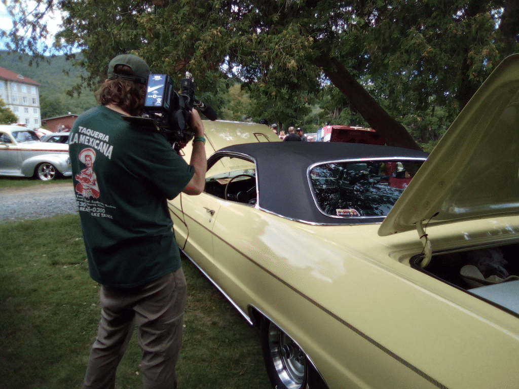 The camera crew filming the car.....