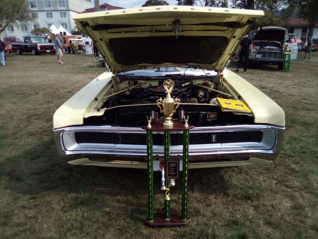 We as a family every other year go to the Adirondack Nationals a FANTASTIC & HUGE hotrod/car show hosted in Lake George NY every year and each year they have special guests. One year they had Horny Mike and Roli from Counting Cars, another year they had Steve Darnell from the Welderup show, and another year they had Bogi from All Girls Garage. Last year in 2021 they had Dave Kindig from Bitchin Rides. We went and took the S/23 last year to the show and I was very happy and surprised because we won Favorite Mopar, and I'm pretty sure we got on TV!! The camera crew guys were at the show and filming for an upcoming episode featuring the show, and they were taking video of the S/23! While they were doing their thing, I talked to them a little and they said that Mr. Kindig liked the car and was saying to his crew how big it was. The first 2 pictures are of when we first got the trophy....