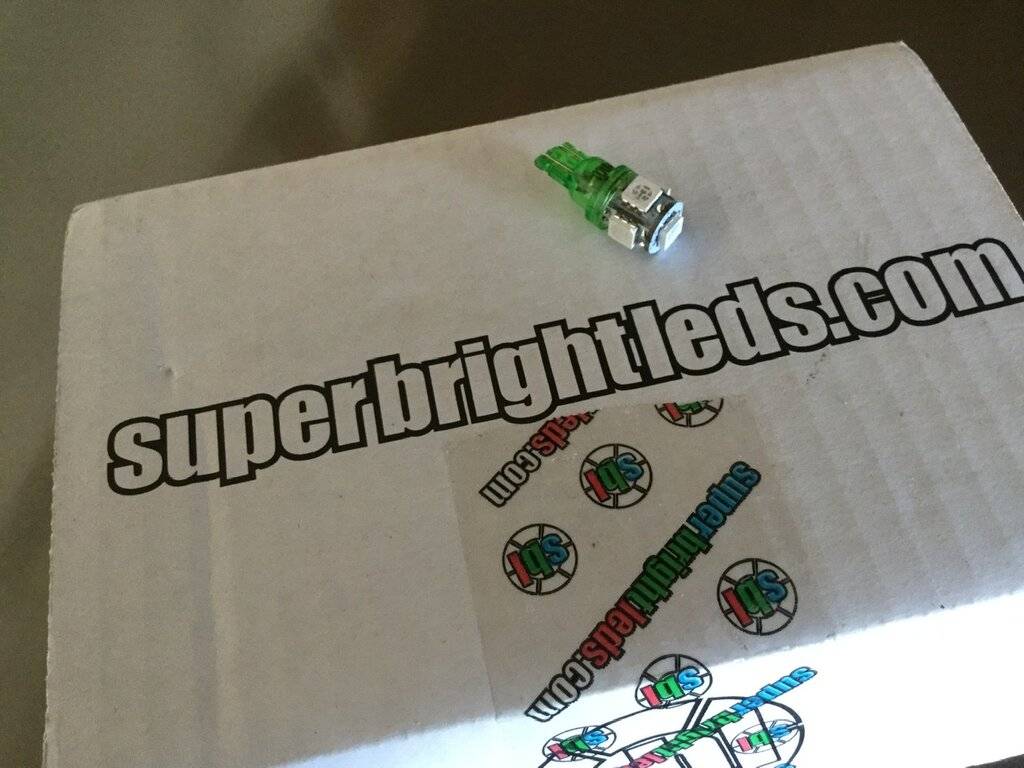 Buy quality leds and be sure to get full coverage leds. Note the diodes all four sides and top. These are dimmable and work with the dash switch. Superbrightleds has a great website with full range of colors available, various plug types and cross reference info.