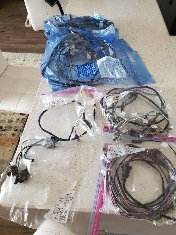 Bagged, tagged, connectors labeled for their end use devices. Have the harness for patterns, now to decide the next course. Pack'em for the flight back to Chicago this week. Still have the remains of the washer bottle and a complete vacuum resvoir to clean up. Hope TSA isn't a pain, already checked with a supervisor two weeks ago. Fingers crossed.