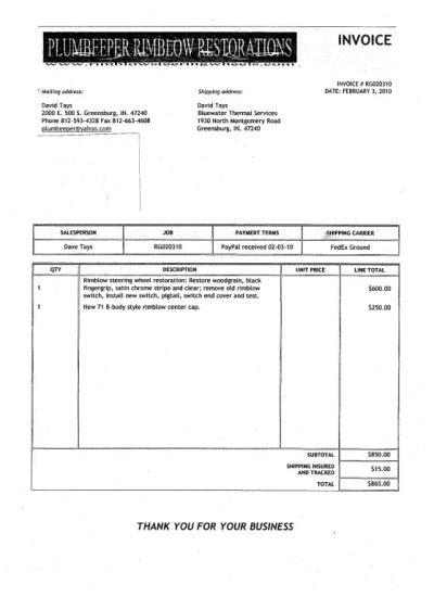 Have a Mopar Rimblow steering wheel complete with center cap and adapter. This was refurbished by Plumbeeber Rimblow restorations 14 years ago. (Invoice attached). Had this on a '71 Superbee until it was old a few years ago. Been hanging on the Man Cave wall as 'garage art' ever since. I have no plans for it so I'm offering it up for sale.
