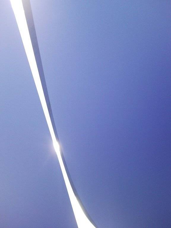 This is the St. Louis Gateway Arch, standing directly beneath it, one brutally muggy morning (8am, 86 degrees, dew point 76, RH in the 90's) in July 2011.