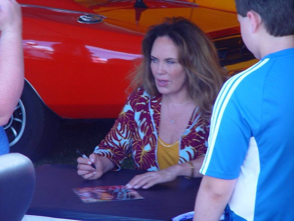 I have a picture of Catherine Bach (Dukes of Hazzard). She is still hot and I would definitely hit it. She was in a tent 8 feet in front of the C-Body line. There was a line a block long all afternoon to meet her and get a picture and signature. The heat and humidity was brutal today. Just amazing to see that many people waiting in line to meet her.