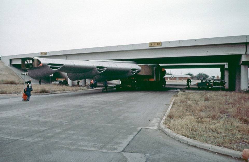 Wow , you know your stuff! Is that a 69 Monaco under the far left side of the over pass? It looks like it may have some sort of yellow sign and pylons on the roof.B-36 wing section.