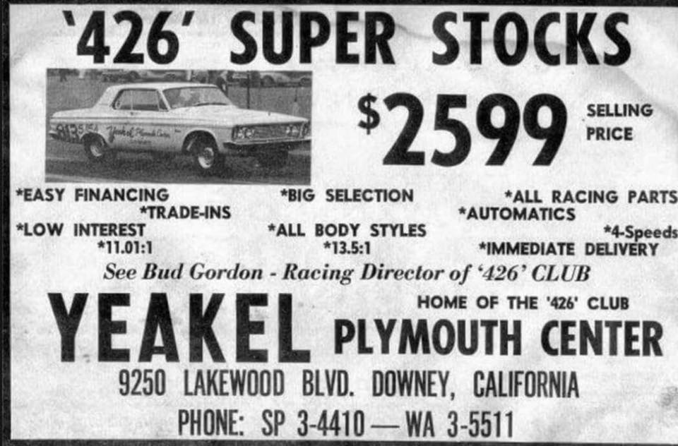 The big Chrysler ran a best of 12.88 @ 108.40, but Lloyd Cox in one of Mickey Thompson's Panchos took the win.