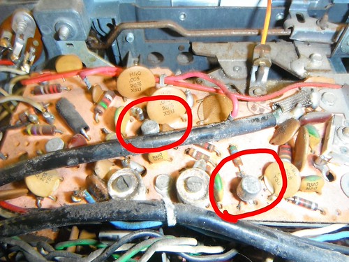 I would like to get my original AM/FM radio working, but seems that here from overseas it is impossible. The radio has been examined and the faulty parts are identified, they are those two components marked. Can someone help to to locate the parts and get them shipped here to Finland? Or any direction where from to ask?