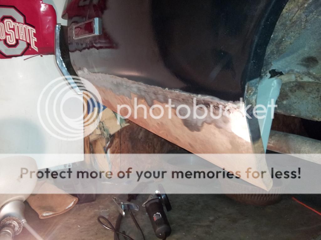 Welp, this is the best I'm going to get it I believe. The seam is not as bad as it looks. Its flush with the surrounding metal, and solid. I still have a pin hole to fill, and a couple small spots to grind down. Also wanna run a couple tacks along the backside, to be double sure its solid, and not gonna crack/fall apart from road vibration when shes back on the road. Then a bit of filler, and good to go.