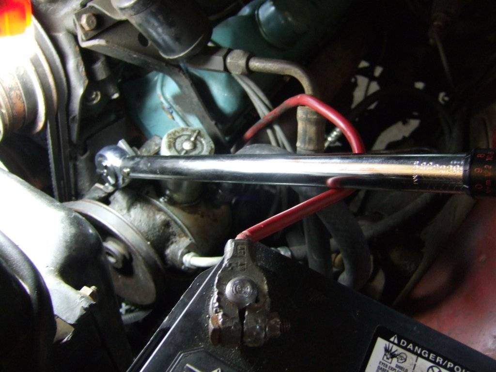 The tool shown above allows you to get hold of the power steering pump bracket and and adjust the bracket tension with a torque wrench as shown below: