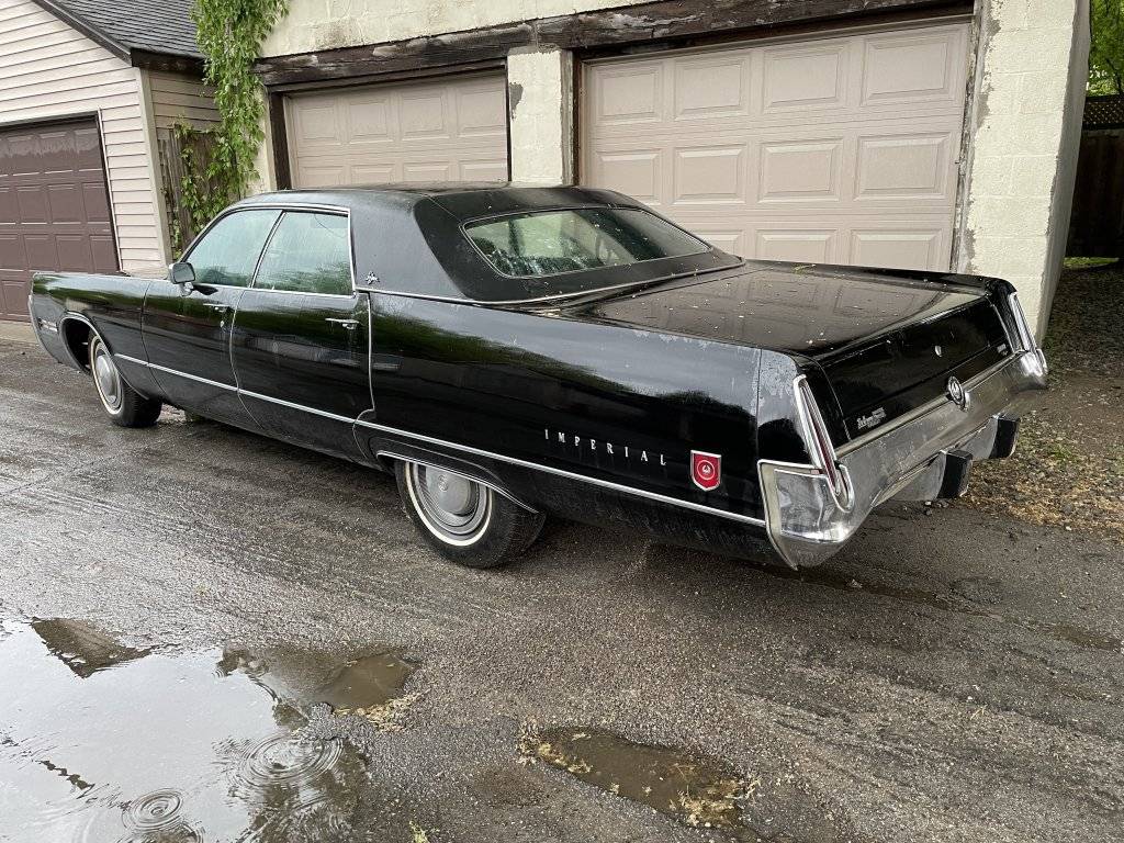 beautiful car. hope it fits in the garage. My 72 coupe wouldnt fit in a new subdivision garage in Oakville. Your car is even longer!Picked up my triple black 73 Imperial this morning. Beautiful day for the pick up, but the drop off not so much. Severe storm warning alert just as we are arriving into Toronto, flat bed 25 min behind me. Just as he pulls onto my back street the wind and clouds open up. I was lucky to get him to unload the car, dropped the Imperial in the middle of the lane/street and ran. Good friend and neighbour helped me push it aside to a temp landing spot.
