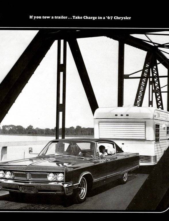 We pulled our trailer with a new 67 Newport Custom too! When we got the trailer dad thought he would have to order a trailer tow pkg. His engineers at work said a Big block, torqueflite, a/c and load leveling hitch would give him enough H.D. stuff to tow. They were correct and he wasn't driving a car that "rode like a truck" the rest of the year.