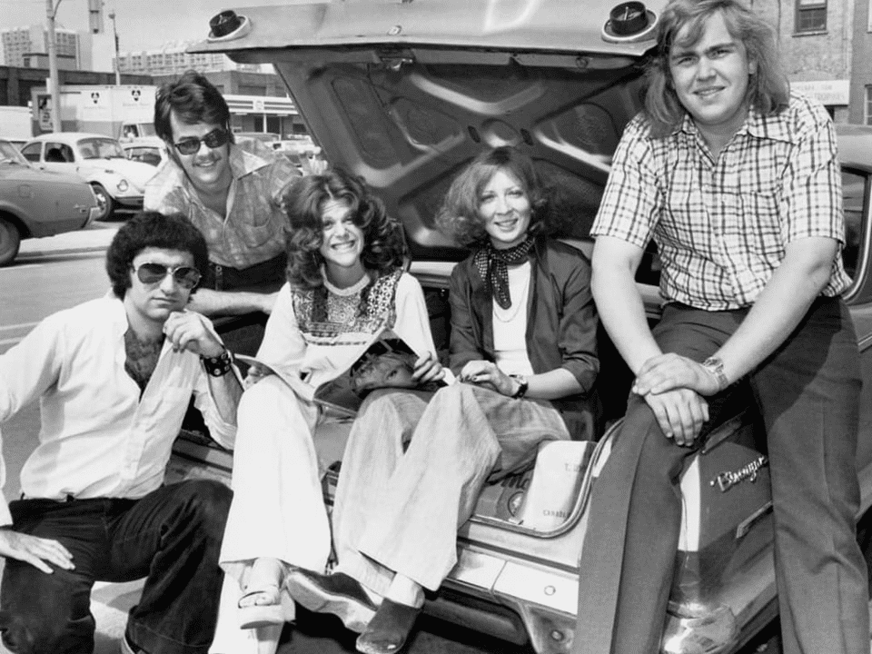 Dan Aykroyd, John Belushi, Gilda Radnor, ???, and John Candy.