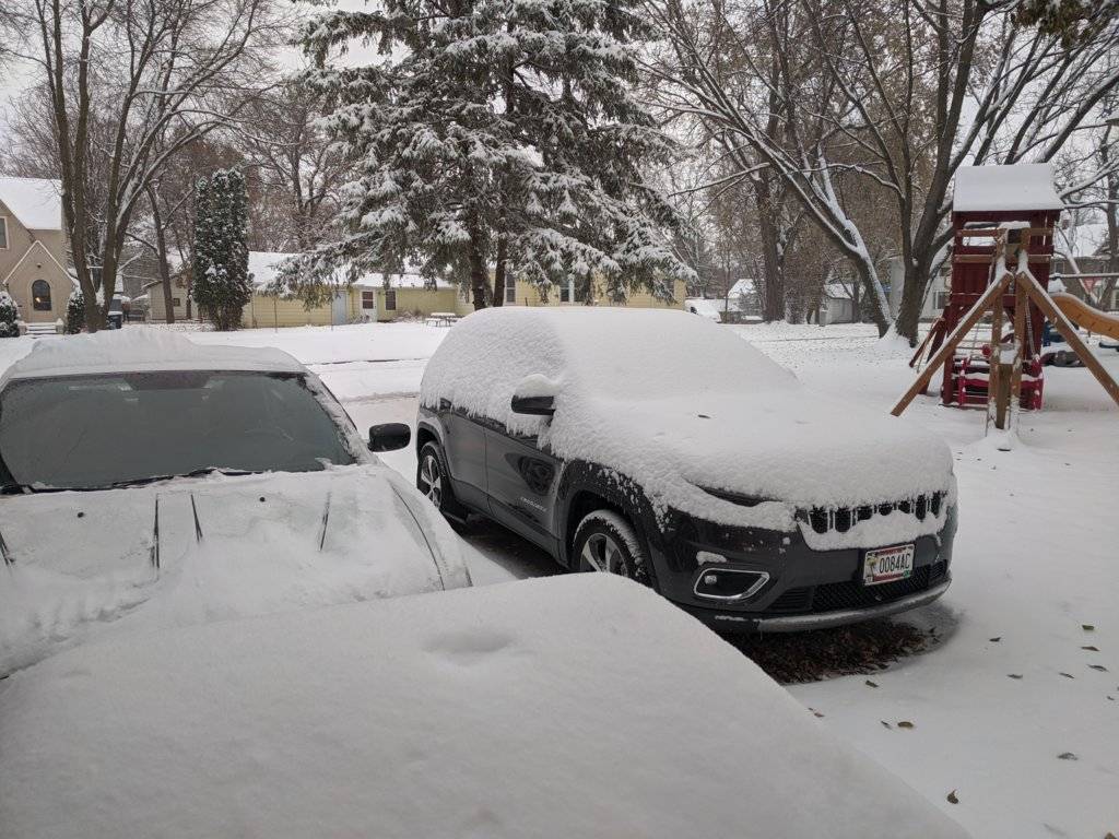 Anyway, fired up my small snowblower and got the shovel out. The stuff was pretty wet and the little blower got plugged once or twice. Watched one of my neighbors try to blow it with a leaf blower while I sipped my coffee.....not happening!!!