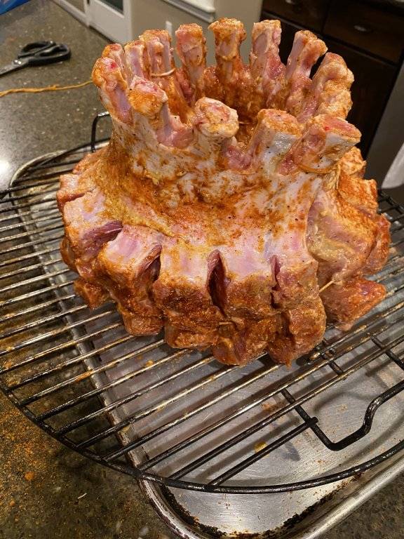 Decided to try a crown roast on the Big green egg. A little snowy this morning, but manageable.