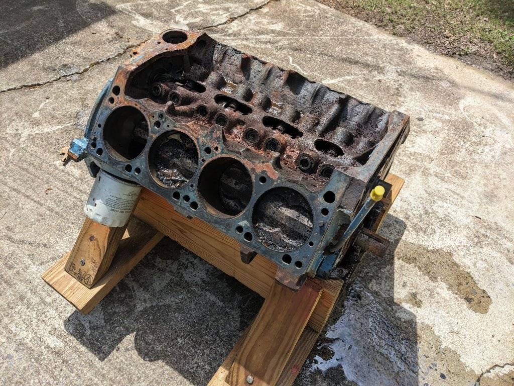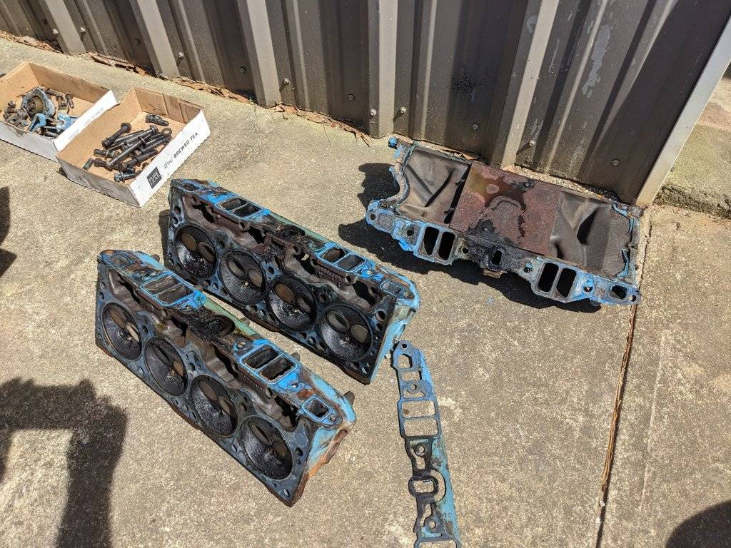 I've successfully cleaned and salvaged the heads, intake manifold, the rockers and shafts, assorted bolts, the timing gears, and some other items so far.