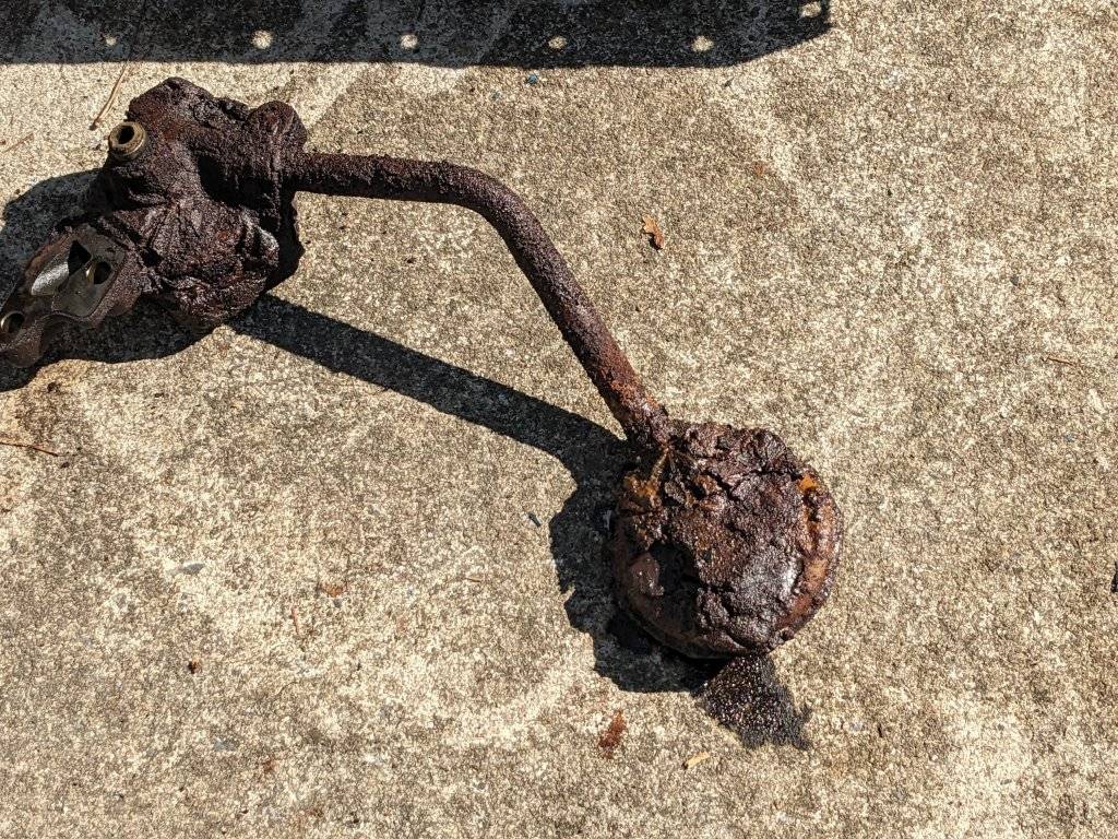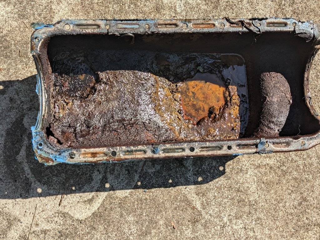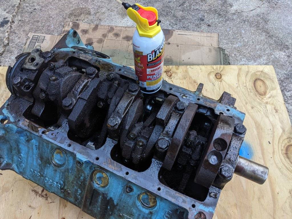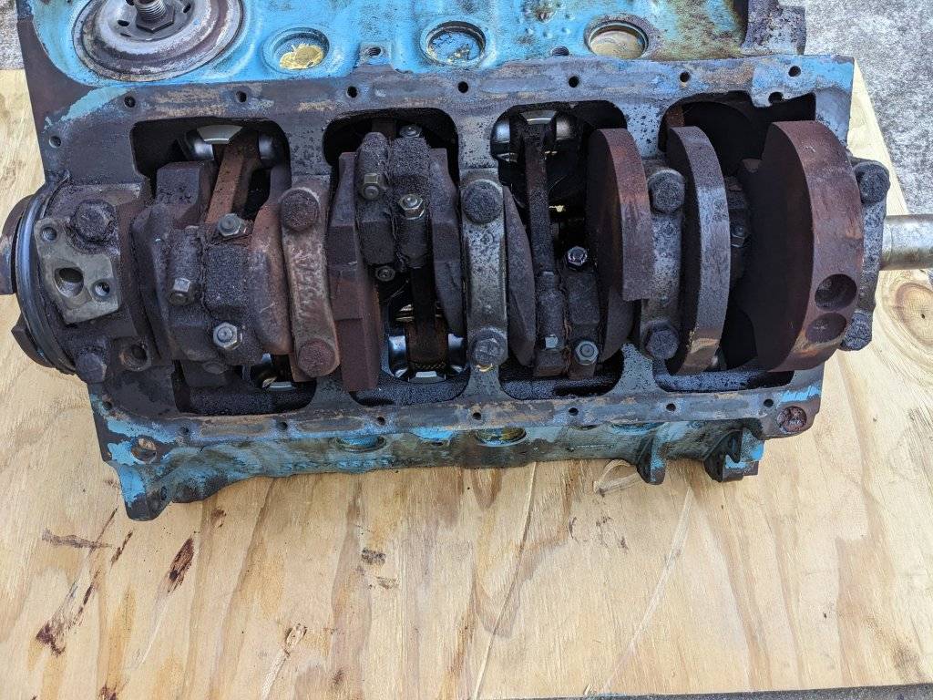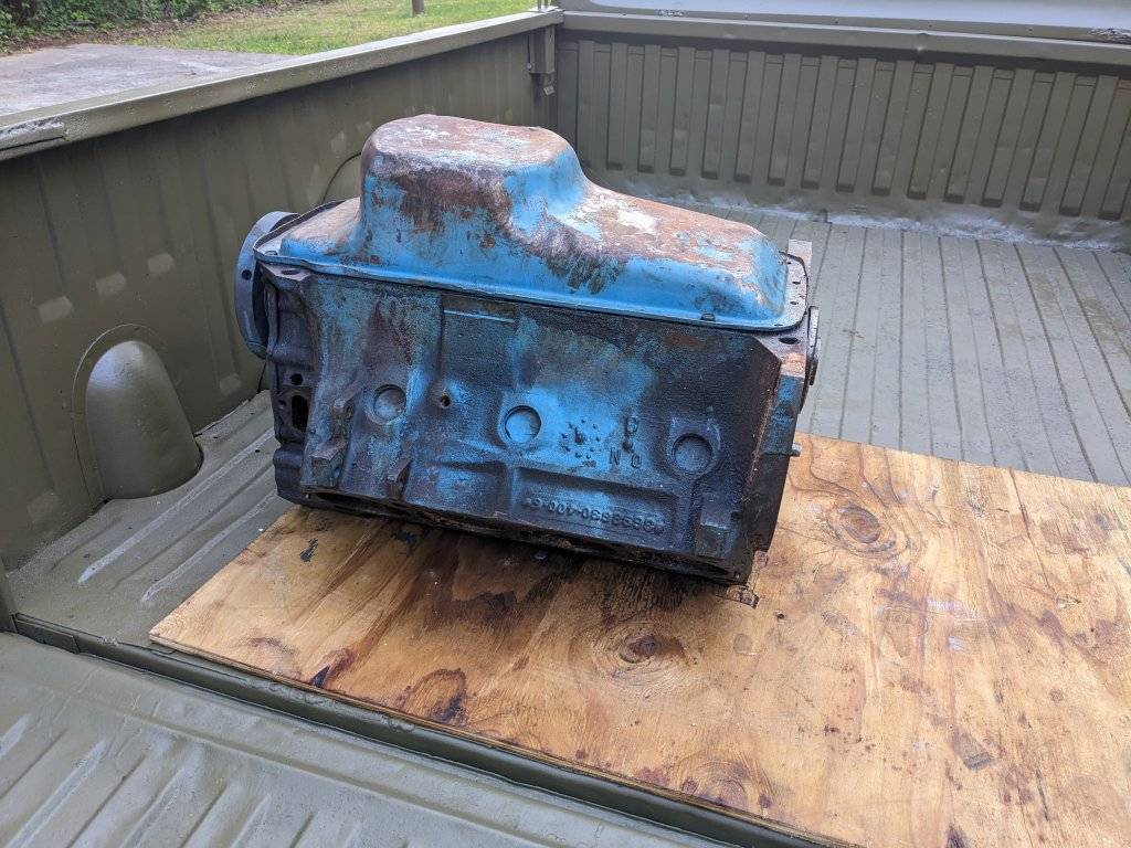 The block, crankshaft, rods, and pistons are unknown as yet. It does not look promising for the block so far. It has already been bored 0.030", but some more might clean it up. The oil pan looks bad, but will likely clean up okay. The pistons will likely clean up okay, if they can come out without damage. The rods and crankshaft remain to be seen...