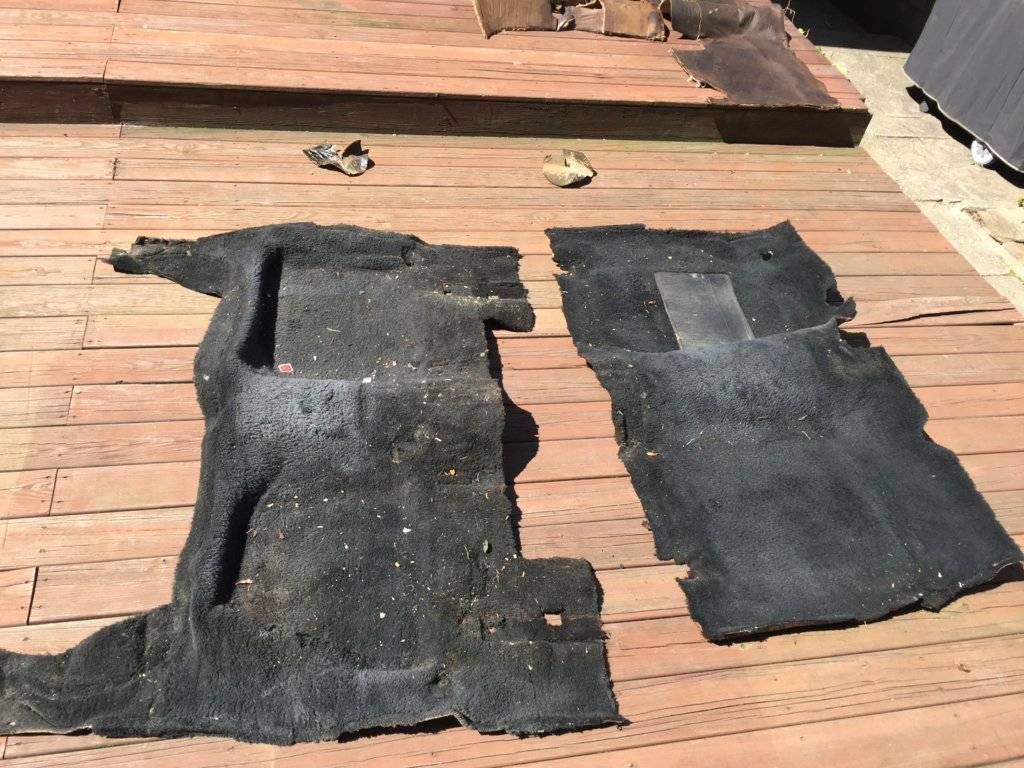 If the carpet has no holes, I'd re-dye it. None of the aftermarket carpets will have the deep pile if the original.I laid out all of the sound deadening and carpet on the deck for some airing after 40+ years of being in the car.