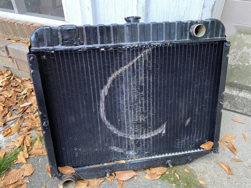 I was tuning the carb and planned on getting the anti freeze in the engine for winter. All was well until I leaned on the rad support. Without fenders it shifted just enough to catch the spinning fan making purée out of my OEM shroud and newly re-cored radiator. Ironic thing was, I was done with the tuning and it was running great, I just wanted to check it again with the vacuum gauge and the **** literally hit the fan.