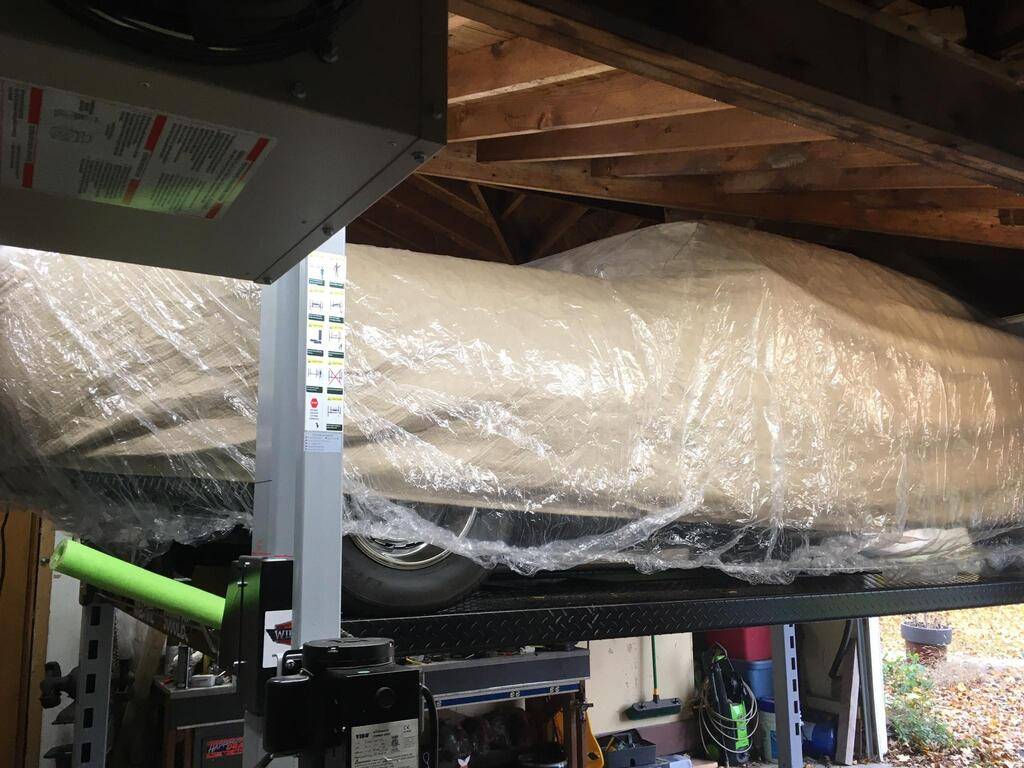 It's that time of year again. The car got covered and put up in the air so the '65 Barracuda can get driven under it. I'm going to keep the Barracuda drivable for the next week or so. Might be able to sneak out a time or two on nice days. The garage side for the Barracuda will be clear for the snow blower and that stuff...