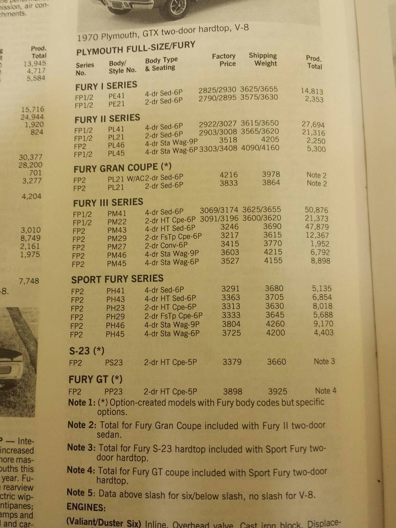 Could be a mistake in the Chrysler book.? (Not PP but PH for the 70 GT.)
