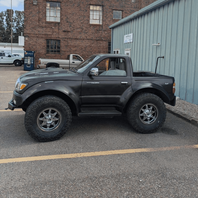 Heavily modified suburban chassis. 5.3 with a 4l80. The fender flares are 100% hand made, much like the rest of it. The bed is about 3.5 ft long