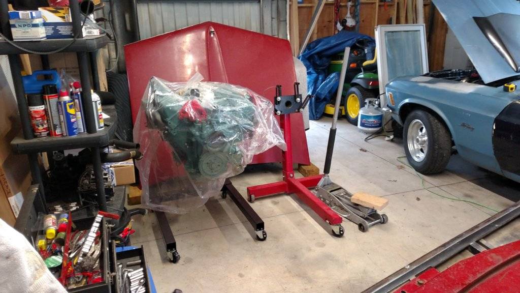 Starting to make a little progress with the engine transplant for the '66 convertible. The patient is ready: