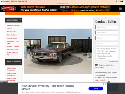 Sell Your C Body Automobile Here - Plymouth Fury - Dodge Custom 880 - Chrysler 300 - Dodge Polara - Dodge Monaco - Chrysler Town and Country station wagon - Chrysler Newport - Chrysler Windsor - Plymouth VIP - Chrysler Imperial - Plymouth Gran Fury - Chrysler New Yorker