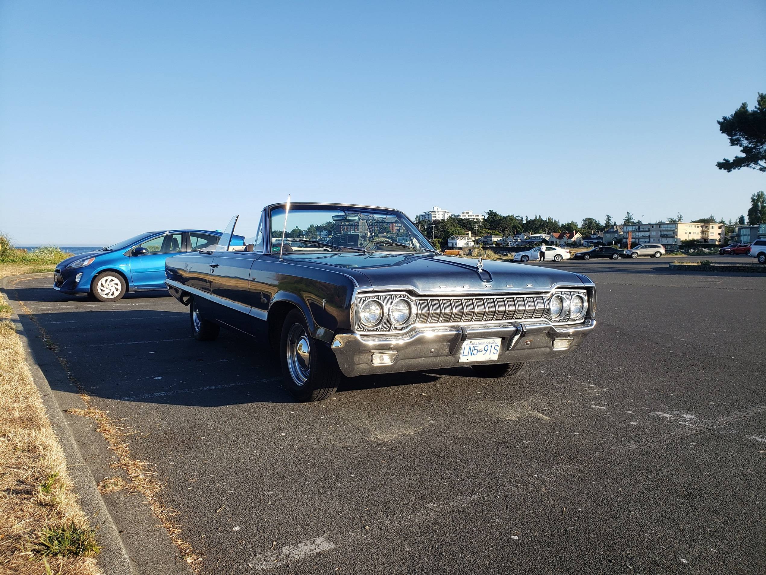 1965 Dodge Monaco convertible. It has been a BC car its whole life, though I know very little about its past. It was born with a 318 but the PO transplanted an RV 440 and 727 into it. Also included was a single-plane intake and a new Edelbrock carb, dual exhaust, aluminum rad. It has had a disc brake conversion up forward, and has retained the drum brakes out back.