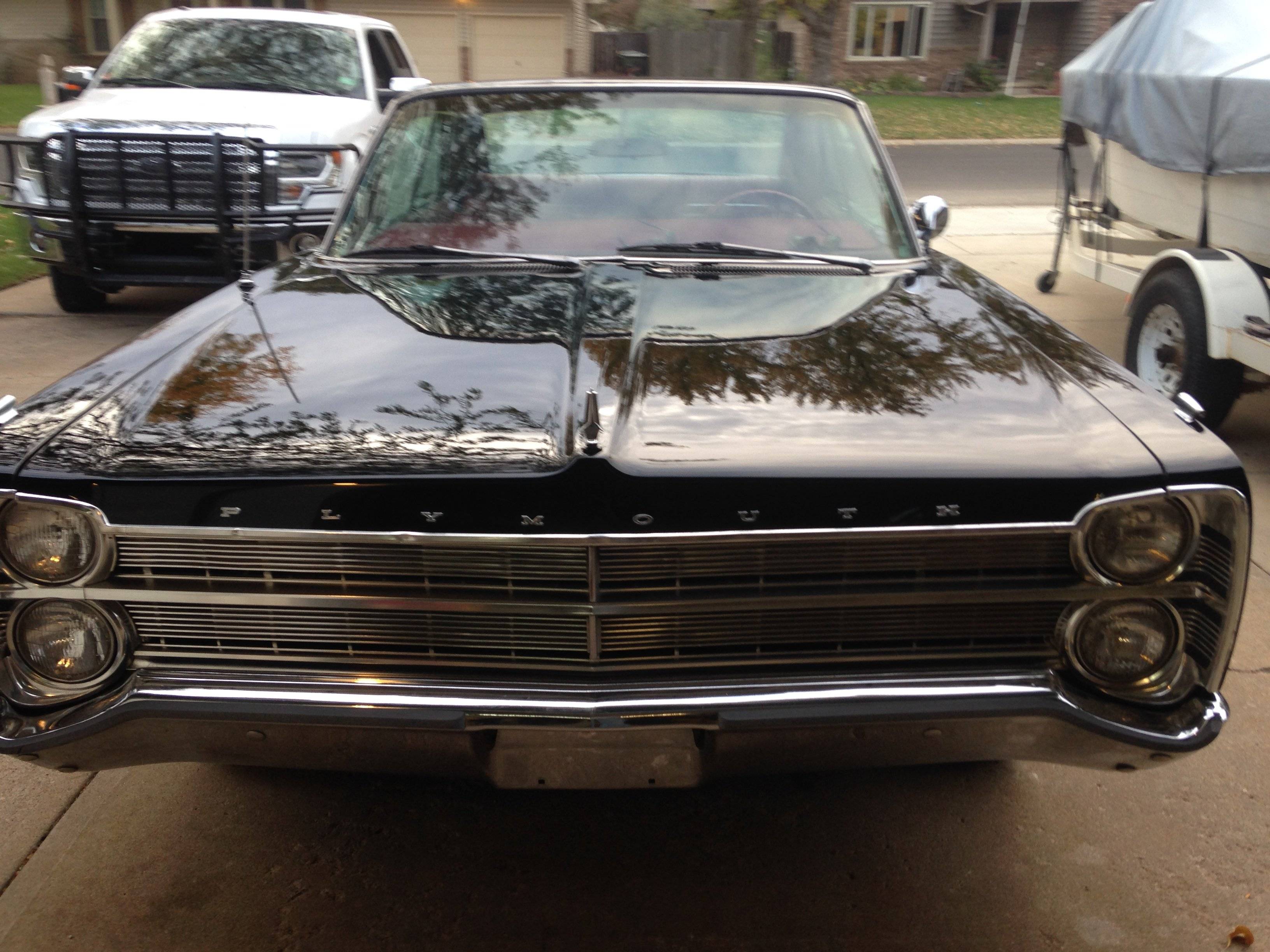 Awesome looking Sport Fury. I like the black with red interior combo. Looks sharp. I like the Cragars too. What engine you have? My step-dad has a 67 Sport Fury Convertible. His is blue on blue. 383 HI-PO. Best of luck with yours. Tear up the road:steering: