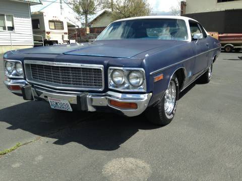 ...this is our 1973 Dodge Polara Custom. Factory A/C, all tinted glass, AM/FM radio, Power windows, locks, trunk release, and seat. Factory finished in B9 Blue Met, with medium blue interior and white vinyl roof.