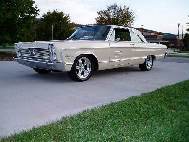 1966, Plymouth Sport Fury. 383, 727 Auto, with AC. Beige ext, Blk int., buckets and console. 17" American Racing Torque Thrust with Falken tires, 225/55/17 Fr., 235/55/17 rear. I have the original wheels, hub caps, and side skirts. Car has hidden radio system with original am radio in dash.