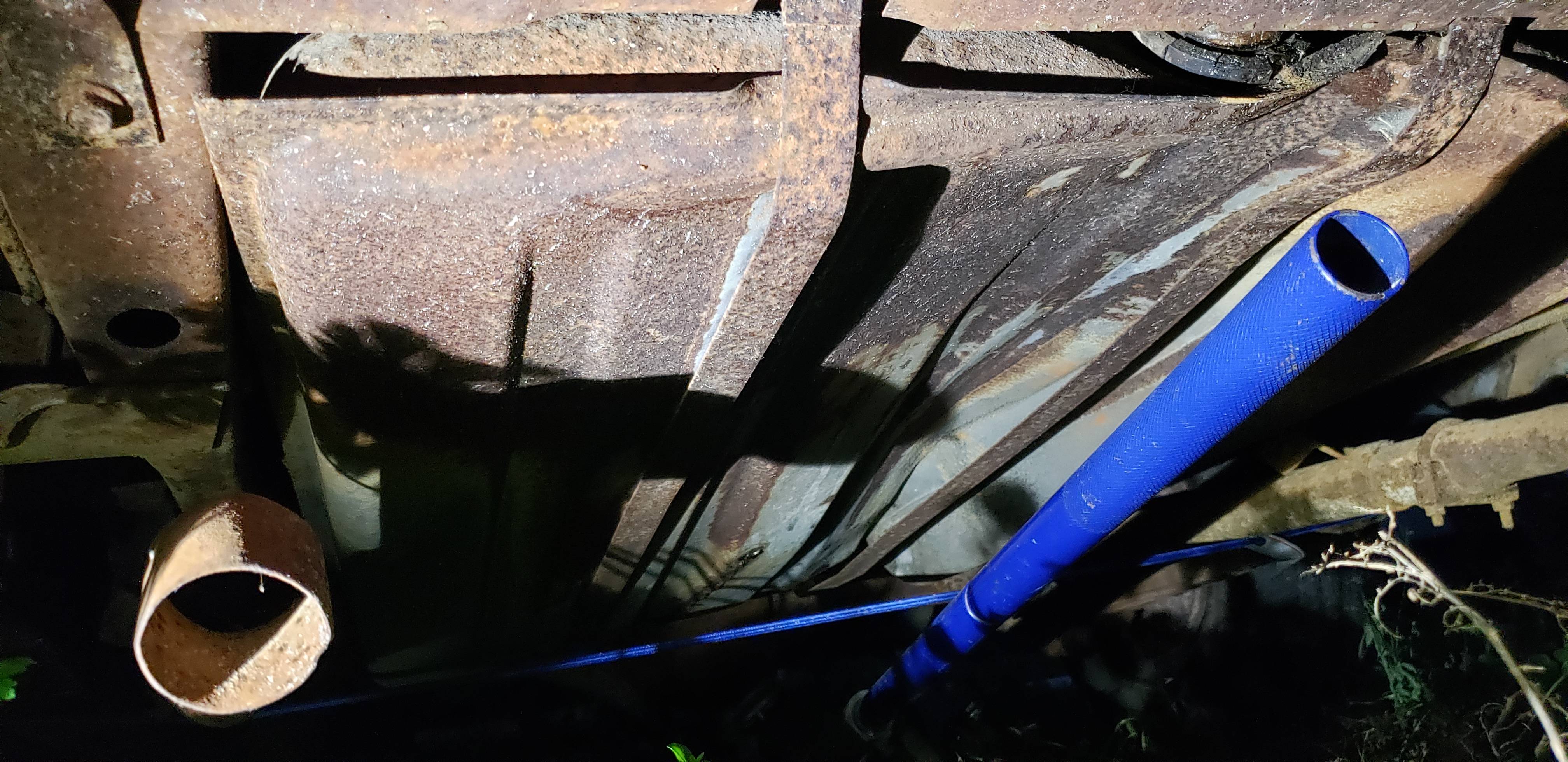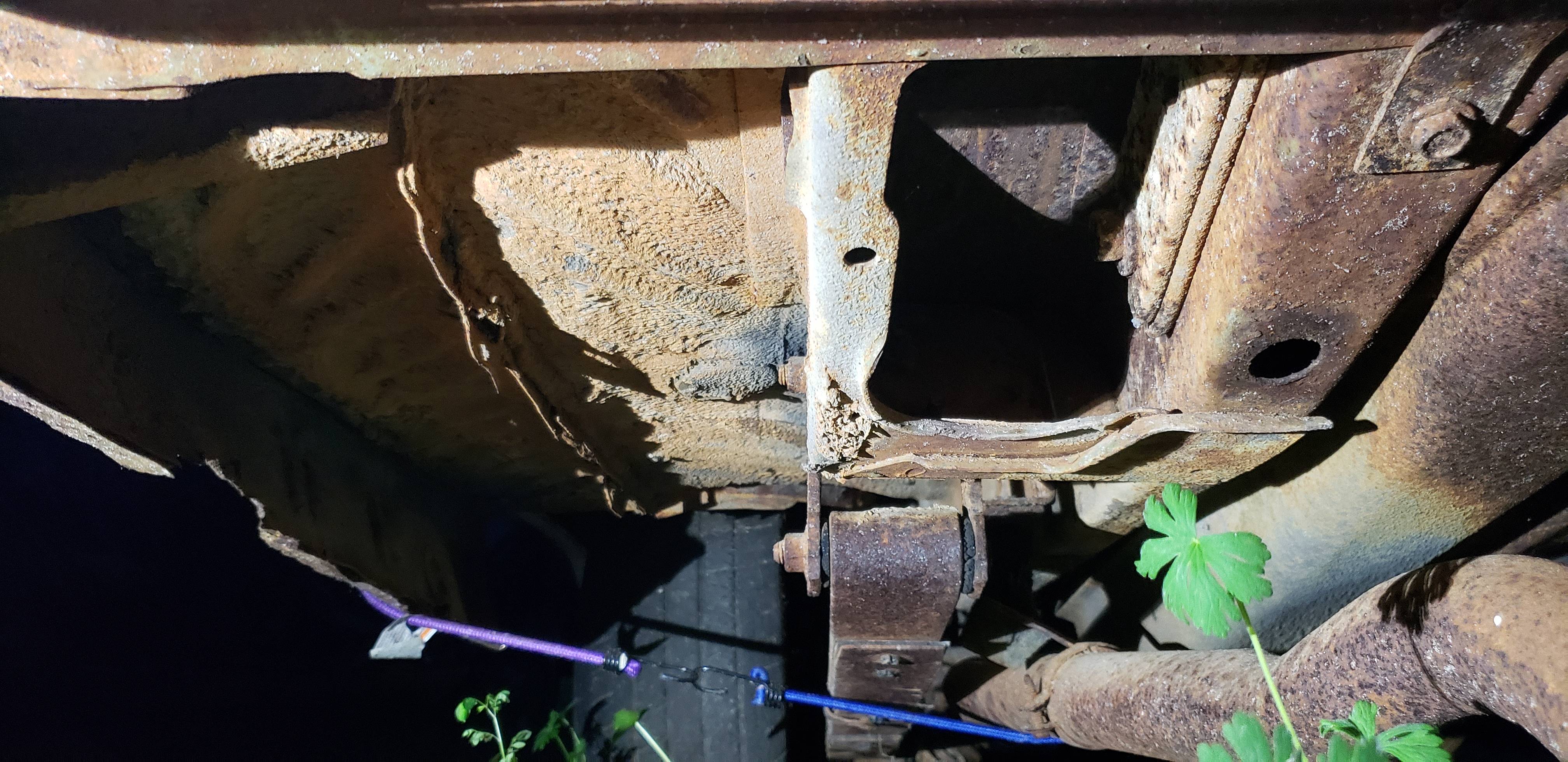 Well I'm leaving in the morning (Again) so I decided to check out the torque boxes, they all seem to be intact along with all the rear unibody.The subframe in the front seems to be intact, what I thought was rusted out on the driver side turned out to be the floor board folded down and a bunch of mud built up there. Sorry for the bad lighting ONLY had a few minutes. Just trying to keep the updates going with what little time I have