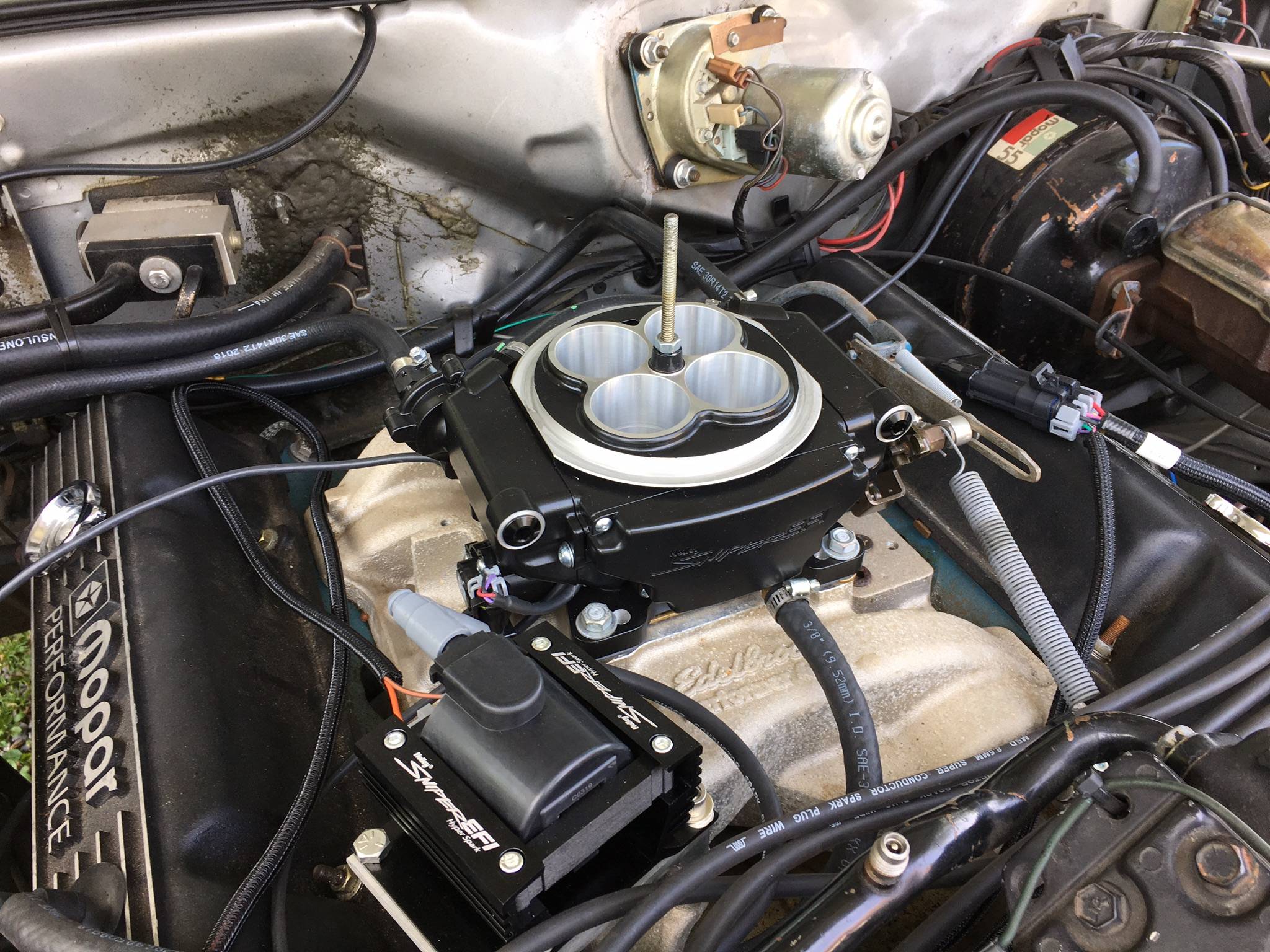 True survivor this car was used on special occasions only. At 11,000 the original owner had the factory 440 pulled out and built. Mild Crower cam bored block TRW pistons Melling oil pump Hooker headers Edelbrock intake manifold etc. I added a Holley Sniper self tuning EFI