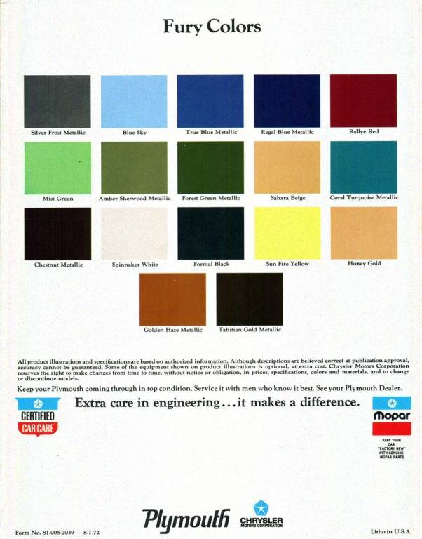 I also maintain a 1973 Plymouth Fury I which is a retired Montana State Police vehicle and is only equipped with a 3 speed trans and that great 440 4bbl. The vehicle was originally painted and restored by Trooper Ron Williams as a Delaware State Police Alcohol Safety Patrol car. Ironically, Trooper Williams was killed by a drunk driver prior to finishing his car. In the finished photos below showing the car in white and royal blue the number on the roof of the 73 was his badge number. Along with the new paint the car was restored to the original condition of a Delaware State Police Vehicle with the normal paint scheme and with all appropriate emergency lighting. Original factory paint codes were used to restore the car since they came to Delaware already painted at the factory. The 1973 is now a museum car and unfortunately will never be driven again.