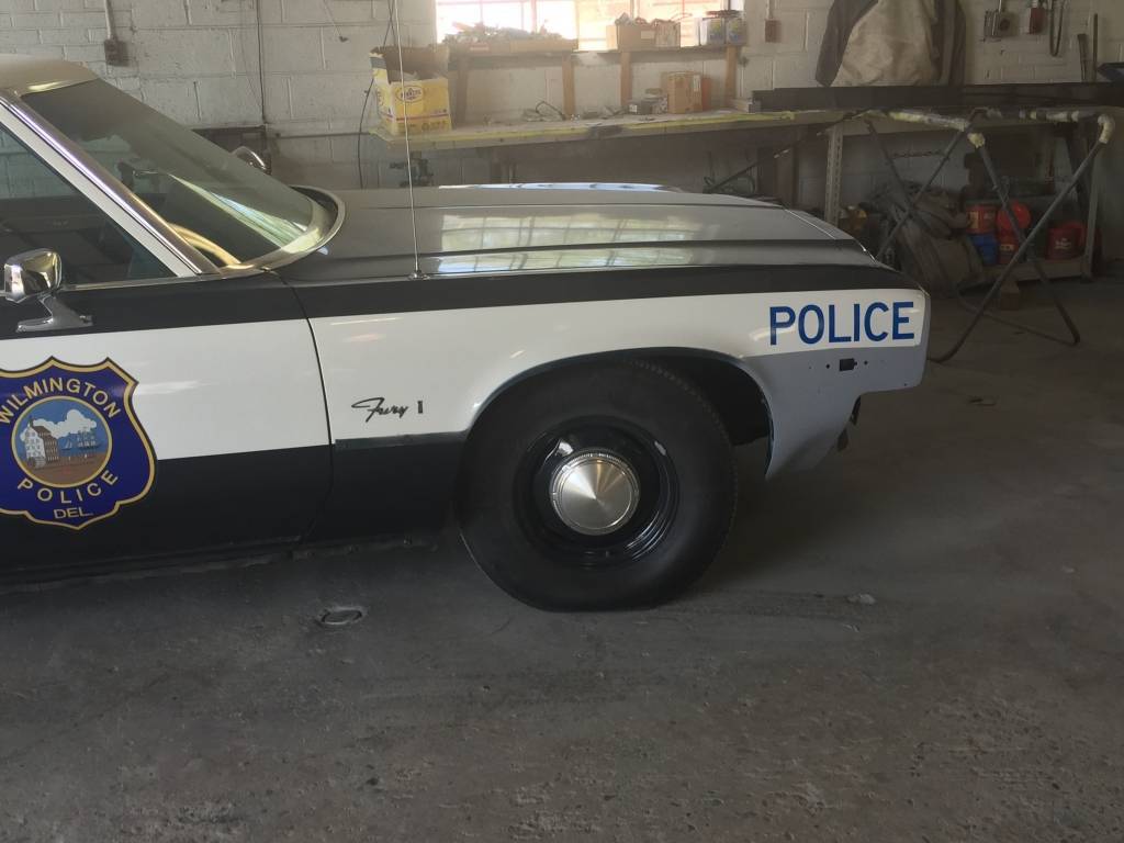My good friend and I own a 1974 Plymouth Fury which was one of two purchased in 1974 by the Wilmington Police Department here in Delaware. Both were originally assigned to the detectives division and were not marked for patrol. But after numerous accidents one of the 1974’s was marked for patrol use in mid 1974. This vehicle was discovered in New Jersey and returned to Delaware where it was restored in 2004 by numerous members of the Delaware Antique Police Car Association. Since 2013 myself (Mike) and good friend Mike both started an extensive overall of the vehicle in my garage bringing it to a period correct state, with much information on equipment coming from retired members of the Wilmington Police Department. The vehicle is now equipped with all original emergency lighting, radios and sirens. Also in 2013 I overhauled the 360 V8 and it was returned to original condition. I'm hoping with the help from many of you I can find the appropriate place for many of the factory decals that are missing and I hope you can help me locate some interior trim pieces which have been beaten due to harsh police use as well as heat and just overall normal wear since 1974. I'm also in desperate need of a license plate light assembly which is broken and currently taped in place.