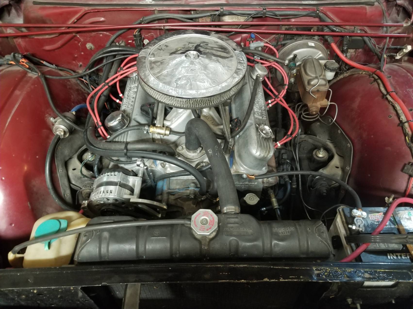 050420: Notice the mighty 318. Comp Cams Xtreme Energy 218/224 Hydraulic Roller. Edelbrock Performer RPM heads (this version is no longer made), ATI fluidamper. Some nice 200 amp alternator that looked pretty. I've got Sanderson headers to install. Fuel is from an Edelbrock ProFlo2. I've got the wideband O2 upgrade to pin out and install, then recalibrate. Transmission is a Keisler Tremec TKO-500 with the B-body specific components, using the original 727 tranny mount (modified) and correct C-body pedals, modified for the power disc brakes from a 74 Town and Country. I want to do the correct Budd 4 piston calipers someday. I've got one loaded caliper sitting in a cabinet in the garage. Rear is an 8.75" 742 with the later Auburn Sure-grip and 3.23 gears.