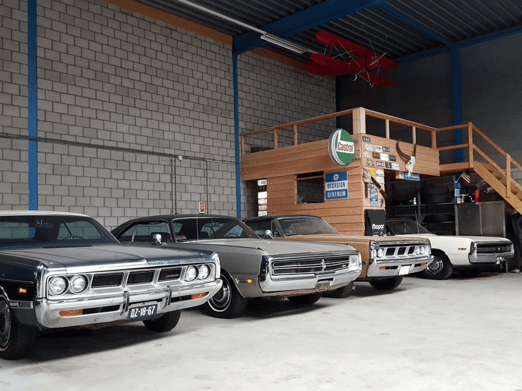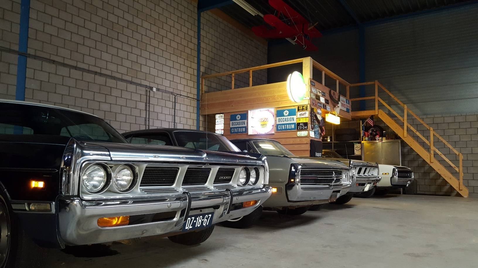The Majestic Four. Pair of Duces? Pair of Pairs...And you've got a convertible hiding in there too. Nice. And.., a biplane for a midget! I like the graphic effect that you included, that's cool too. You do realize you've got room for at least six more, don't you? Starting with the aeroplane: Aeroplane > Vertical Lift > Vertical & Lift........3 triple car lifts, side by side......or a fixed steel rack with a mobile lift. And once you optimize all of that wasted space, YOU GET TO GO OUT AND BUY SIX MORE! See how that works? Anybody looks at you sideways, you just stick to your story..."It's an investment". What country is represented on the tags? What does the OCCASION CENTRUM translate to?