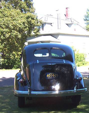 Black exterior with off white broadcloth interior, and banjo steering wheel. Original headliner intact. Exterior restoration approximately 15 years ago. Original wheels and hubcaps. Car runs but needs brake work. $9,500