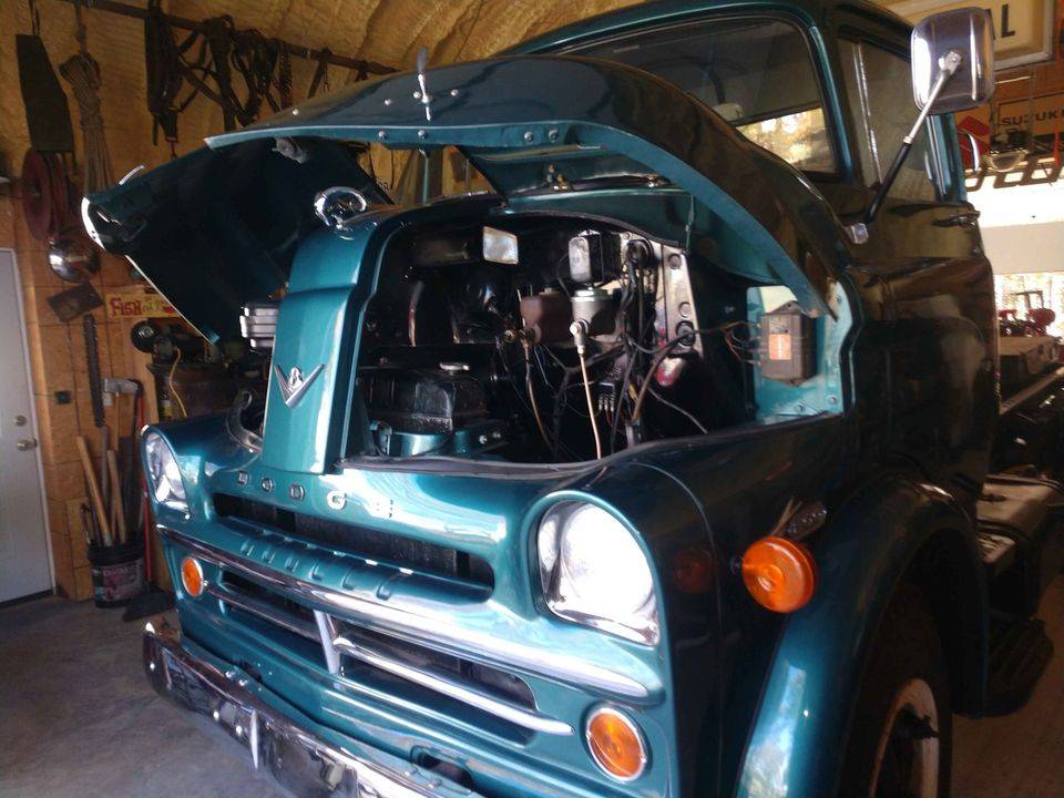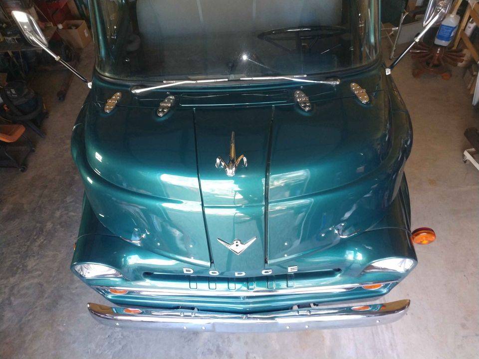 1957 Dodge COE. Completely restored 20 years ago and sat inside closed up building every since. Brakes will have to be redone. Has a 341 hemi firedome engine. Zero rust. Paint is still in beautiful condition. This was a off frame restoration when it was done. Tire's were put on new but never saw the light of day. No cracks or rot. Asking $18000. Truck will need to be transported but you can drive it on to the transport. Nine(see ad). Clear clean title in hand. Fuel tank will have to be removed and cleaned. They left fuel in the tank and the inside rusted. I cleaned and replace all fuel lines and filter. The carburetor has also been rebuilt. The engine runs and sounds good. The truck needs a complete brake job before it will be road worthy. Any questions call nine(see ad)