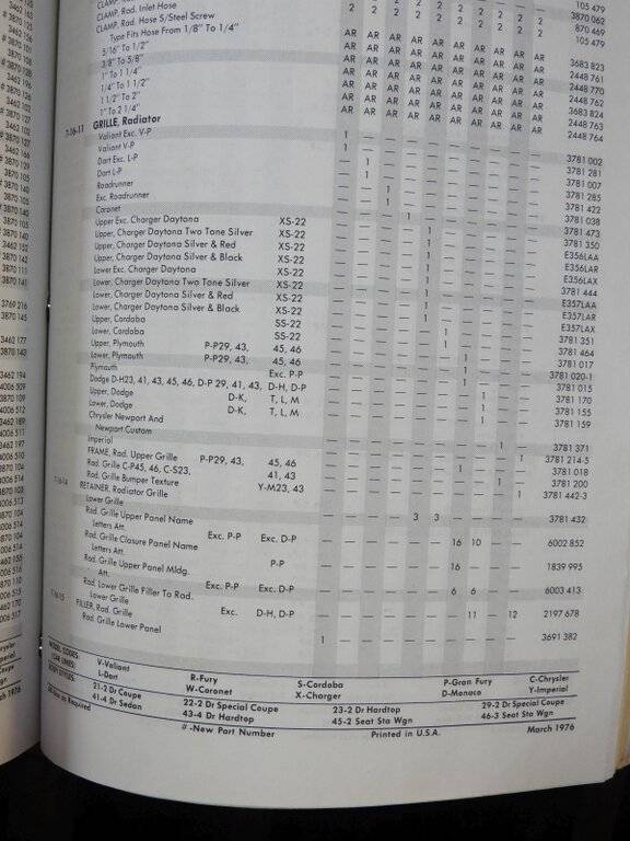 Personally I have every Mopar part book (truck or car) from 1929-1999 in paper form in binders. I also have a CD from Chrysler that covers 1982-2012 (car & trucks). After 2012 you have to go to a dealership to see them on their computers. I also have accessory books from the 1950s to the present. To say the least it occupies an enormous space and it weighs about a billion pounds. (pics of some of the books I have)