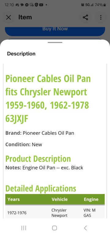 I have a 1961 Newport with the 361b engine that I am trying to find a replacement oil pan for. I have found several places that list 1959-60 1962-78.