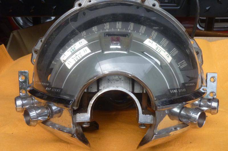 moparcuda said: 62 Chrysler 300 instrments panel for parts ,the lens is cracked,,$50View attachment 40036 View attachment 40036 Click to expand... Hi, is the temp gauge still in it (can't see the needle) and does the speedo turn freely? Give me a message.