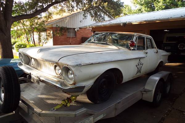 Up for auction is an original 1962 Plymouth Police Car, owned by feared Texas lawman "Hugo W. Ackermann, aka The Law!